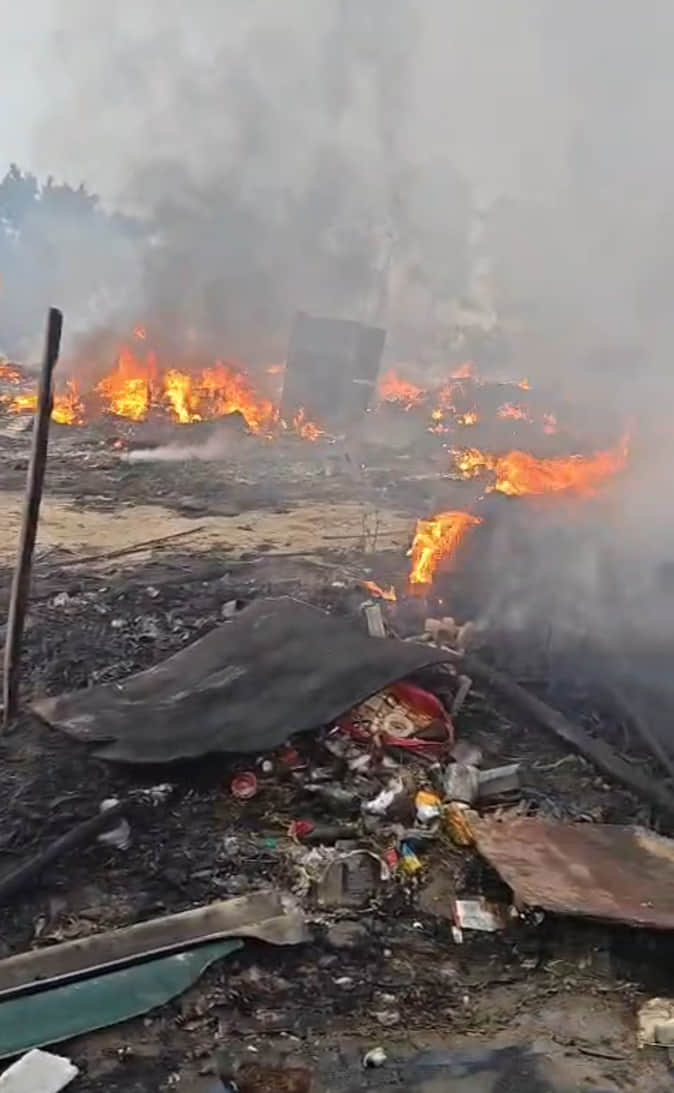 सादिकपुर स्थित झुग्गियों में लगी आग। संवाद