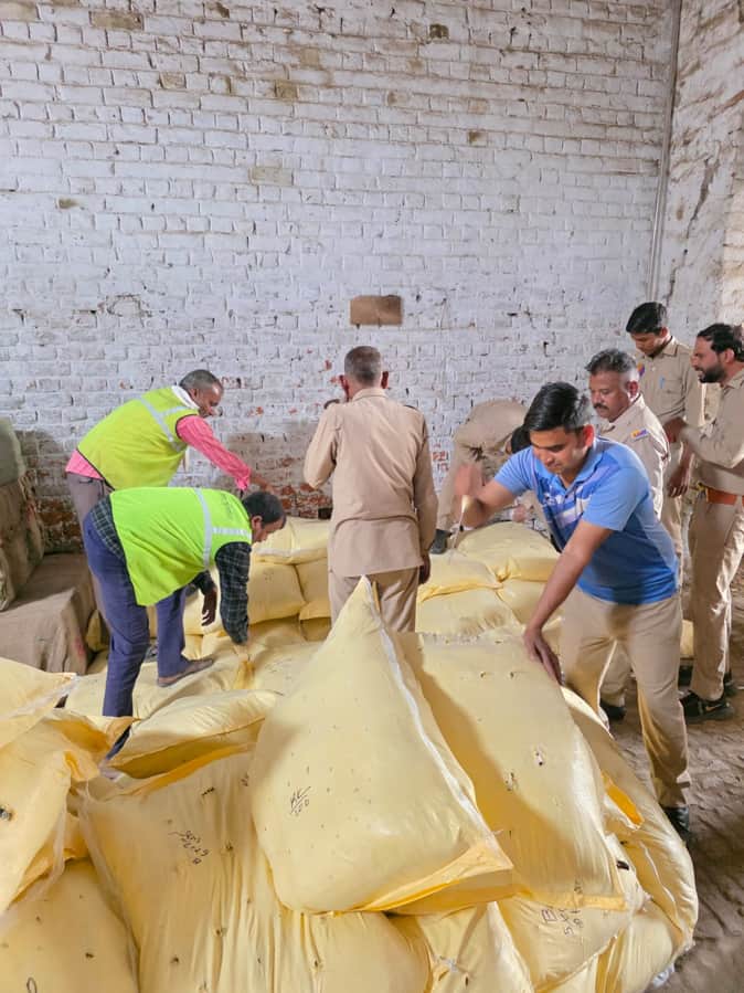 साहिबाबाद। मोहन नगर जोन में जनकपुरी वार्ड-70 स्थित मैसर्स हरियाणा गोल्डन ट्रांसपोर्ट गोदाम में मंगलवार को नगर निगम की टीम ने छापा मारकर करीब 40 लाख रुपये की प्रतिबंधित पॉलीथिन बरामद की है। टीम ने गोदाम मालिक से दो लाख का जुर्माना भी वसूला है। गोदाम में नगर निगम की टीम को 27, 473 किग्रा पॉलीथिन मिली है।