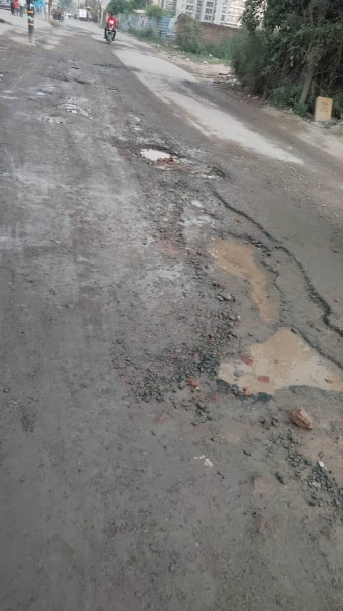 राजनगर एक्सटेंशन की टूटी हुई हम तुम रोड। संवाद