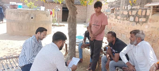 हथीन छांयसा गांव में स्वास्थ्य विभाग की टीम सर्वेक्षण करते हुए