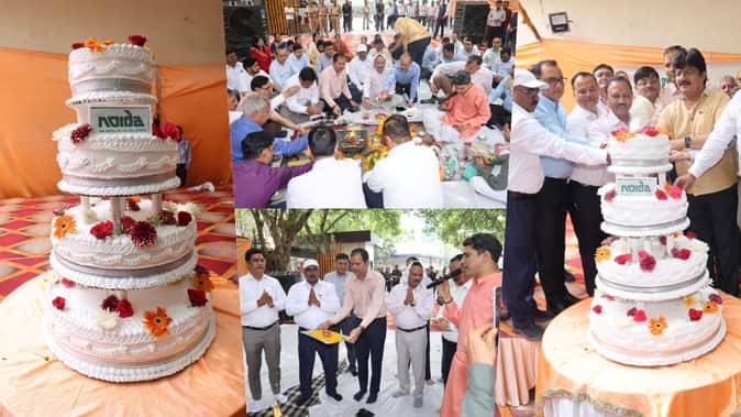 नोएडा ने 50 साल पूरे किए: स्थापना दिवस पर प्राधिकरण में जश्न का माहौल, हवन-पूजन और केक कटा