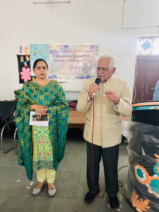 श्री सनातन धर्म वरिष्ठ माध्यमिक विद्यालय में छात्रों का मार्गदर्शन करते विद्यालय के पुरातन छात