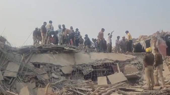 तीन मंजिला निर्माणाधीन इमारत ध्वस्त