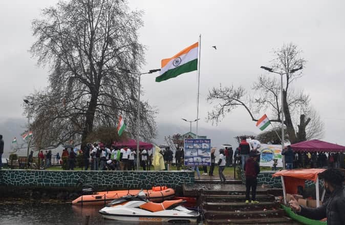 युवाओं ने मंगलवार को चार चिनारी में खराब मौसम के बावजूद कार्यक्रम का आयोजन किया। इसमें श्रीनगर म्युनिसिपल कारपोरेशन (एसएमसी) के डिप्टी मेयर, काउंसलर और काफी संख्या में कश्मीरी युवा मौजूद रहे। एसएमसी के डिप्टी मेयर परवेज कादरी और डल झील में सफाई अभियान की शुरूआत करने वाली छोटी बच्ची जन्नत ने तिरंगा फहराया। राष्ट्रगान के साथ सभी ने तिरंगे को सलामी दी।