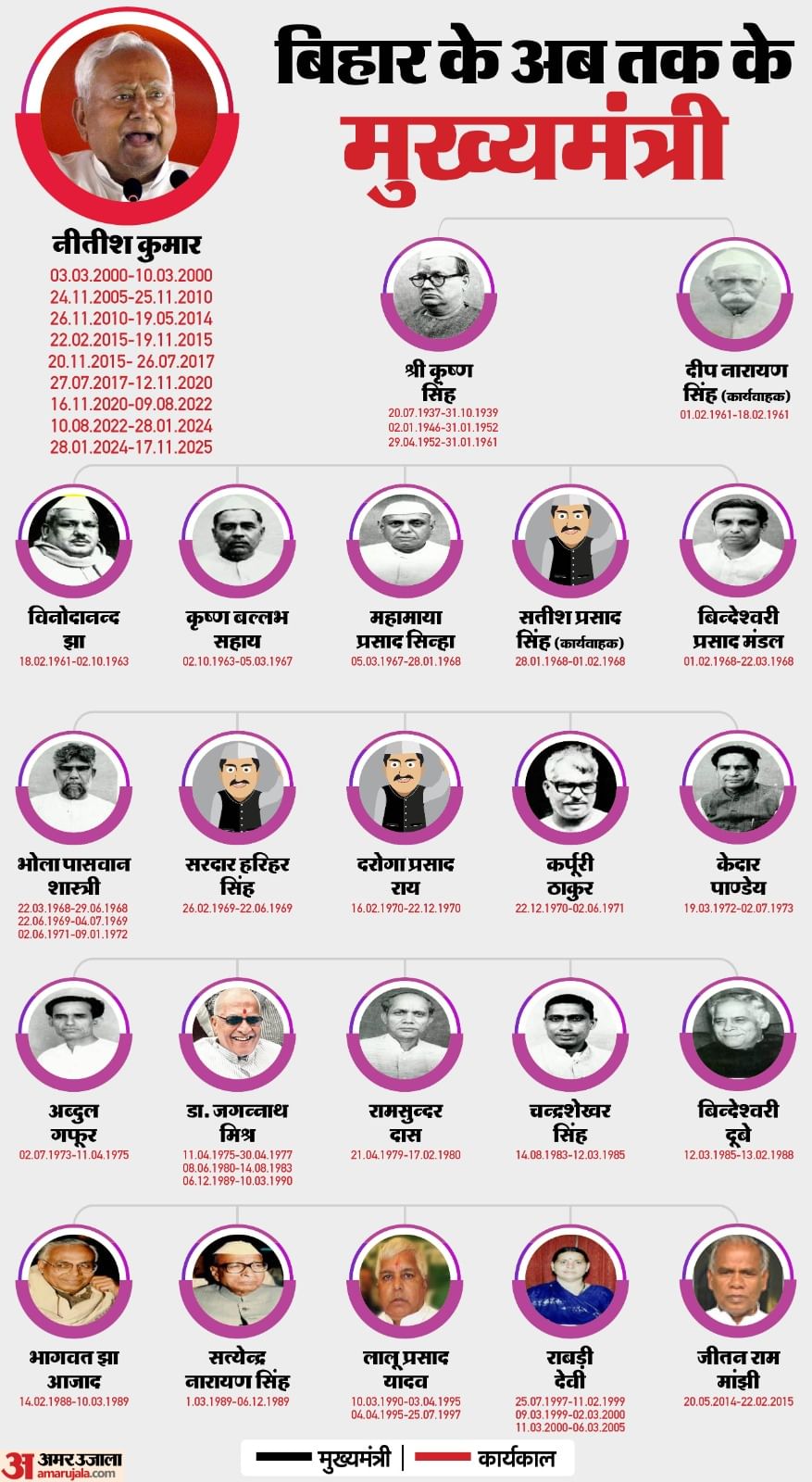 देश के कितने मुख्यमंत्रियों का कार्यकाल नीतीश से भी ज्यादा रहा?, जिन मुख्यमंत्रियों का कार्यकाल नीतीश से ज्यादा रहा उन्होंने कितनी बार पद की शपथ ली?, बिहार में कितने मुख्यमंत्रियों ने एक से ज्यादा बार शपथ ली?, बिहार में सबसे ज्यादा कार्यकाल वाले मुख्यमंत्री कौन हैं?, सबसे ज्यादा वक्त तक मुख्यमंत्री पद पर रहने वालों की सूची कैसी है? आइये जानते हैं...