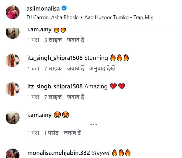 मोनालिसा का यह वीडियो किसी पार्क में शूट किया लग रहा है, जहां प्राकृतिक नजारे कैद हुए हैं। एक्ट्रेस के लुक पर नेटिजंस और फैंस तारीफ कर रहे हैं। लोग कमेंट सेक्शन में फायर और रेड हार्ट इमोजी बना रहे हैं।
