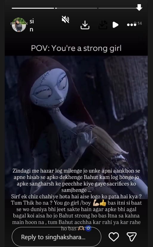 अक्षरा सिंह ने अपनी इंस्टाग्राम स्टोरी पर एक पोस्ट शेयर किया है। इसमें उन्होंने लिखा है, 'जिंदगी में हजार लोग मिलेंगे, जो उनकी अपनी आंखों से अपने हिसाब से आपको देखेंगे बहुत कम लोग होंगे, जो आपके संघर्ष के पीछे किए गए बलिदानों को समझेंगे। सिर्फ एक चीज चाहिए होती है ऐसे लोगो को पता है क्या? तुम ठीक हो ना? तुम लड़की हो या लड़के, बस जिंदगी में चलते रहो। बस इतनी सी ही बात से वो दुनिया भी जीती जा सकती है। अगर आपके भी आसपास कोई ऐसा हो जो बहुत मजबूत हो, उससे बस इतना सा कहना 'मैं हूं ना, तुम बहुत अच्छा कर रही हो या कर रहे हो'। सिर्फ इतना'।