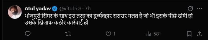23 फरवरी को शेयर किए गए इस वीडियो को अब तक 77,000 से ज्यादा व्यूज और कई कमेंट्स मिल चुके हैं। एक यूजर ने कमेंट करते हुए कहा, 'यह तो हर स्टेज शो में हो रहा है अब, एंकर उसी को बनाते हैं जो ठरकी हो, डबल मीनिंग कमेंट करता हो।' एक और ने लिखा, 'फीमेल सिंगर्स को हमेशा यह गलत शब्दों से एड्रेस करते हैं। एंकर्स को जूता मारना चाहिए।'