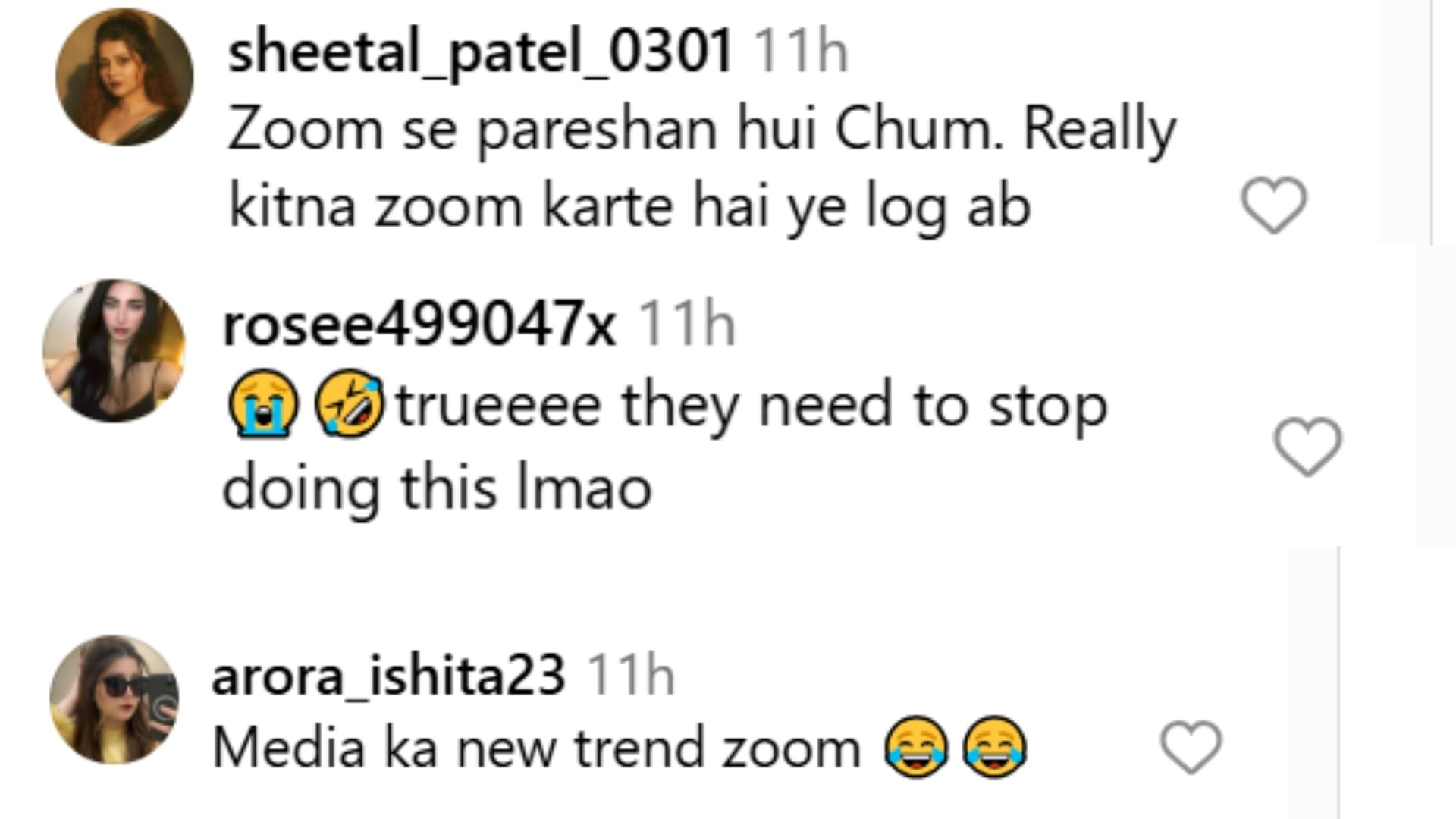 चुम दरांग के वायरल वीडियो और पैपराजी को टोकने की बात पर यूजर्स ने उन्हें सपाेर्ट किया है। एक यूजर लिखती हैं, ‘जूम से परेशान हुई जूम दरांग, कितना जूम करते हैं ये लोग।’ एक अन्य यूजर ने लिखा, ‘ये नया ट्रेंड आ गया है।’ एक यूजर लिखती हैं, ‘इन लोगों को यह सब बंद करना देना चाहिए।’ इस तरह से यूजर्स ने भ चुम दरांग को ही सपोर्ट किया है।