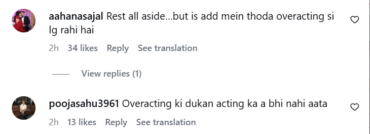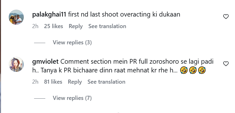 तान्या के विज्ञापन को देखने के बाद कई नेटिजेंस ने तान्या की एक्टिंग पर सवाल उठा दिए। तो वहीं कई यूजर्स ने कमेंट करके तान्या को ओवर एक्टिंग की दुकान बता दिया। एक यूजर ने कमेंट करते हुए लिखा, ‘पहला और आखिरी शूट। ओवर एक्टिंग की दुकान’। जबकि एक अन्य ने लिखा, ‘तान्या का पीआर कमेंट सेक्शन में जोर-शोर से तारीफें करने में लगा है।’ एक ने लिखा कि इससे अच्छी एक्टिंग तान्या बिग बॉस में कर रही थीं। जबकि एक ने लिखा कि एक्टिंग तो ढंग से कर ले बहन। इसके अलावा भी कई यूजर्स ने तान्या की एक्टिंग पर सवाल उठाए हैं।