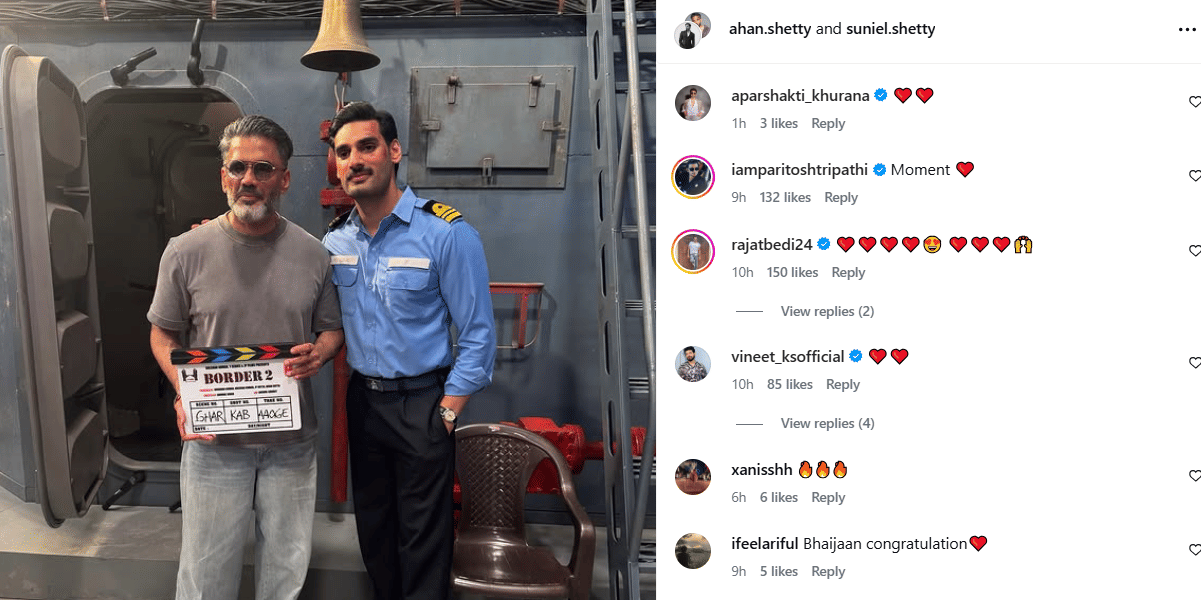 अहान शेट्टी ने 'बॉर्डर 2' के सेट से शेयर की पिता सुनील के साथ तस्वीर, सेलेब्स ने दी दिलचस्प प्रतिक्रिया