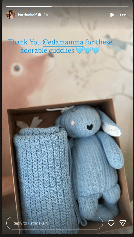 आलिया भट्ट ने कटरीना कैफ और विक्की कौशल के बेटे विहान के लिए बहुत प्यारा तोहफा भेजा है। इस तोहफे की खास तस्वीर कटरीना ने अपने इंस्टाग्राम स्टोरी पर शेयर की है। कटरीना ने इंस्टाग्राम स्टोरी पर इस तोहफे की फोटो शेयर की है। इस गिफ्ट हैप्पर में नीले रंग का एक नरम खरगोश का खिलौना और बच्चे के लिए गर्म कंबल जैसी चीजे नजर आ रही हैं। इसके साथ कटरीना ने लिखा, 'इस प्यारे cuddly खिलौनों के लिए धन्यवाद।'