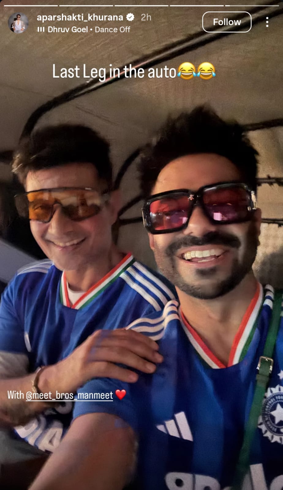 बॉलीवुड एक्टर अपारशक्ति खुराना सिंगर मनमीत (मीत ब्रदर्स) के साथ टी20 वर्ल्डकप देखने पहुंचे हैं। एक्टर ने मैच से पहले की कुछ तस्वीरें अपने इंस्टग्राम पेज के स्टोरी सेक्शन में शेयर की हैं। वह मैच देखने के लिए काफी एक्साइटेड हैं।