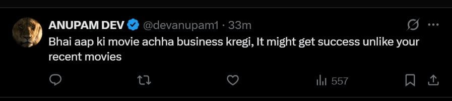 सलमान खान के इस पोस्ट पर नेटिजन्स और फैंस कमेंट्स कर रहे हैं। सलमान खान की फिटनेस ने ध्यान खींचा है। एक यूजर ने लिखा है, 'पेट गायब हो गया अब'। वहीं, कुछ यूजर्स एक्टर को उनकी आगामी फिल्म 'बैटल ऑफ गलवान' के लिए बधाई दे रहे हैं। इसके अलावा यूजर्स तस्वीर पर भी प्यार भरा रिएक्शन दे रहे हैं।