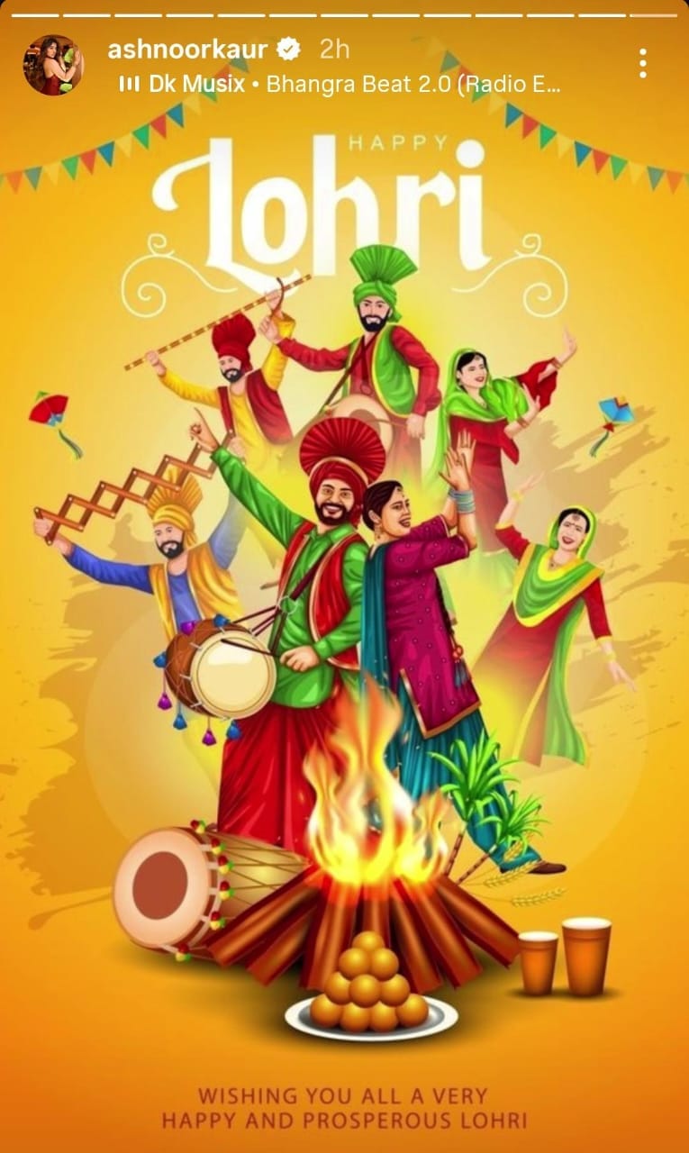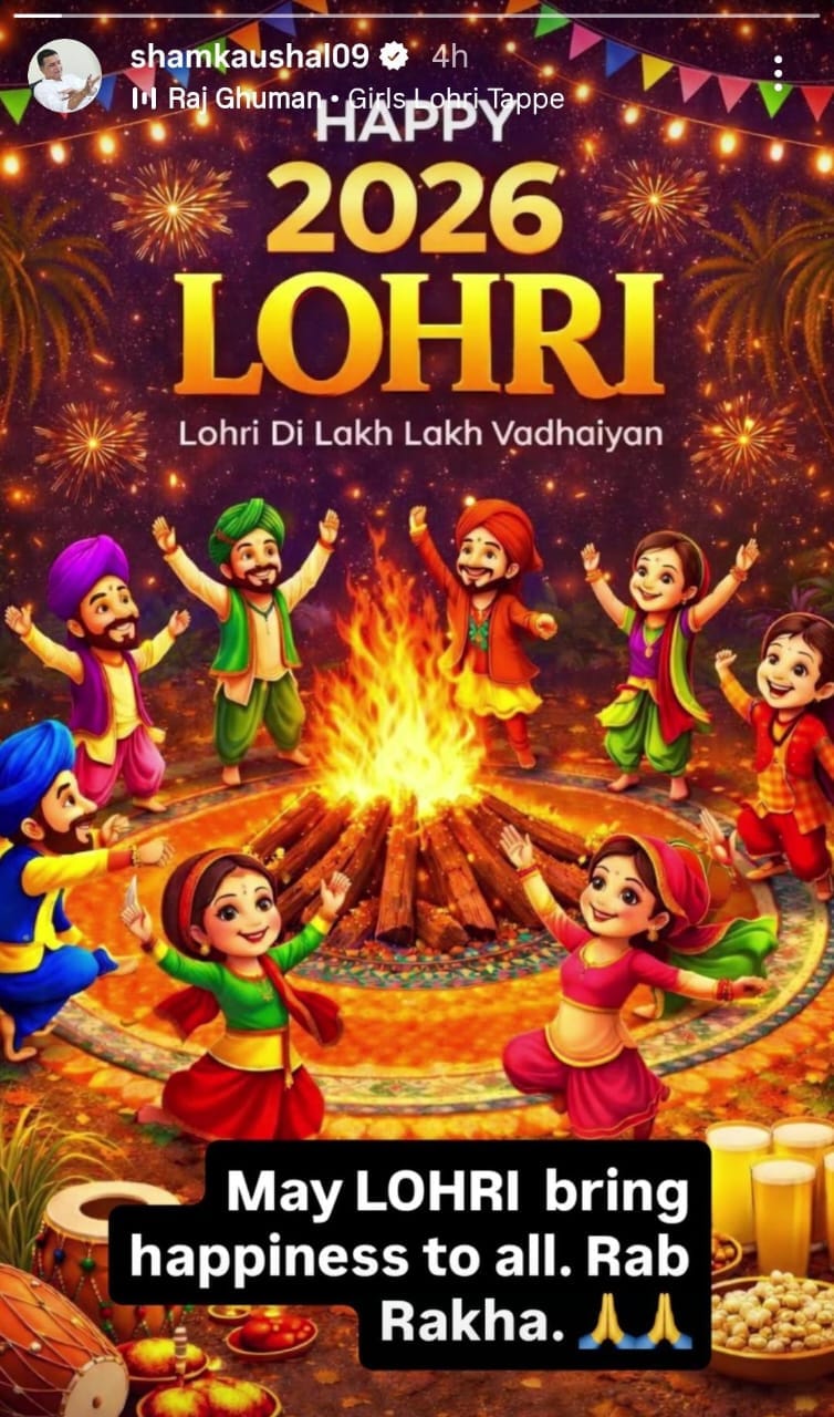 जैकी श्रॉफ और 'बिग बॉस 19' की कंटेस्टेंट अशनूर कौर ने इंस्टाग्राम स्टोरी पर फैंस को लोहड़ी की शुभकामनाएं दी हैं। वहीं विक्की कौशल के पिता शाम कौशल ने भी सभी को लोहड़ी की लख-लख बधाई दी है। शाम कौशल ने लिखा, 'यह लोहड़ी आपके जीवन में ढेर सारी खुशियां लाए।'