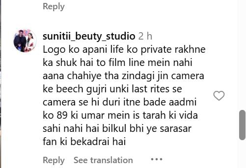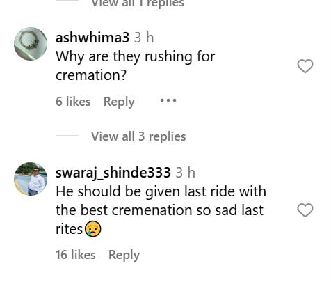 दिग्गज एक्टर धर्मेंद्र को आखिरी विदाई देने इंडस्ट्री के कई दिग्गज सितारे पहुंचे। अमिताभ बच्चन-अभिषेक बच्चन से लेकर सलमान खान, सलीम खान, अक्षय कुमार, दीपिका पादुकोण, रणवीर सिंह, अनिल कपूर, गोविंदा, आमिर खान और शाहरुख खान सभी धर्मेंद्र के अंतिम संस्कार में शामिल हुए। मगर, फैंस इस बात पर निराशा जता रहे हैं कि दिग्गज अभिनेता का अंतिम संस्कार इस तरह किया। सोशल मीडिया पर फैंस लिख रहे हैं, 'इतने बड़े एक्टर की इस तरह विदाई...यह ठीक नही हैं'। एक अन्य यूजर ने लिखा, 'जिंदगी भर कैमरा के सामने रहे और आखिरी वक्त में कैमरा से दूरी'। एक यूजर ने लिखा, 'अंतिम संस्कार जिस तरह किया गया है, वह बहुत निराश करने वाली बात है'।