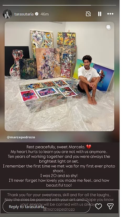 वहीं एक्ट्रेस तारा सुतारिया ने भी इंस्टाग्राम स्टोरी पर उनकी पुरानी पोस्ट शेयर की। उन्होंने लिखा, ‘शांति से आराम करो, प्यारे मार्सेलो। यह जानकर मेरा दिल दुखी है कि अब आप हमारे बीच नहीं रहे।