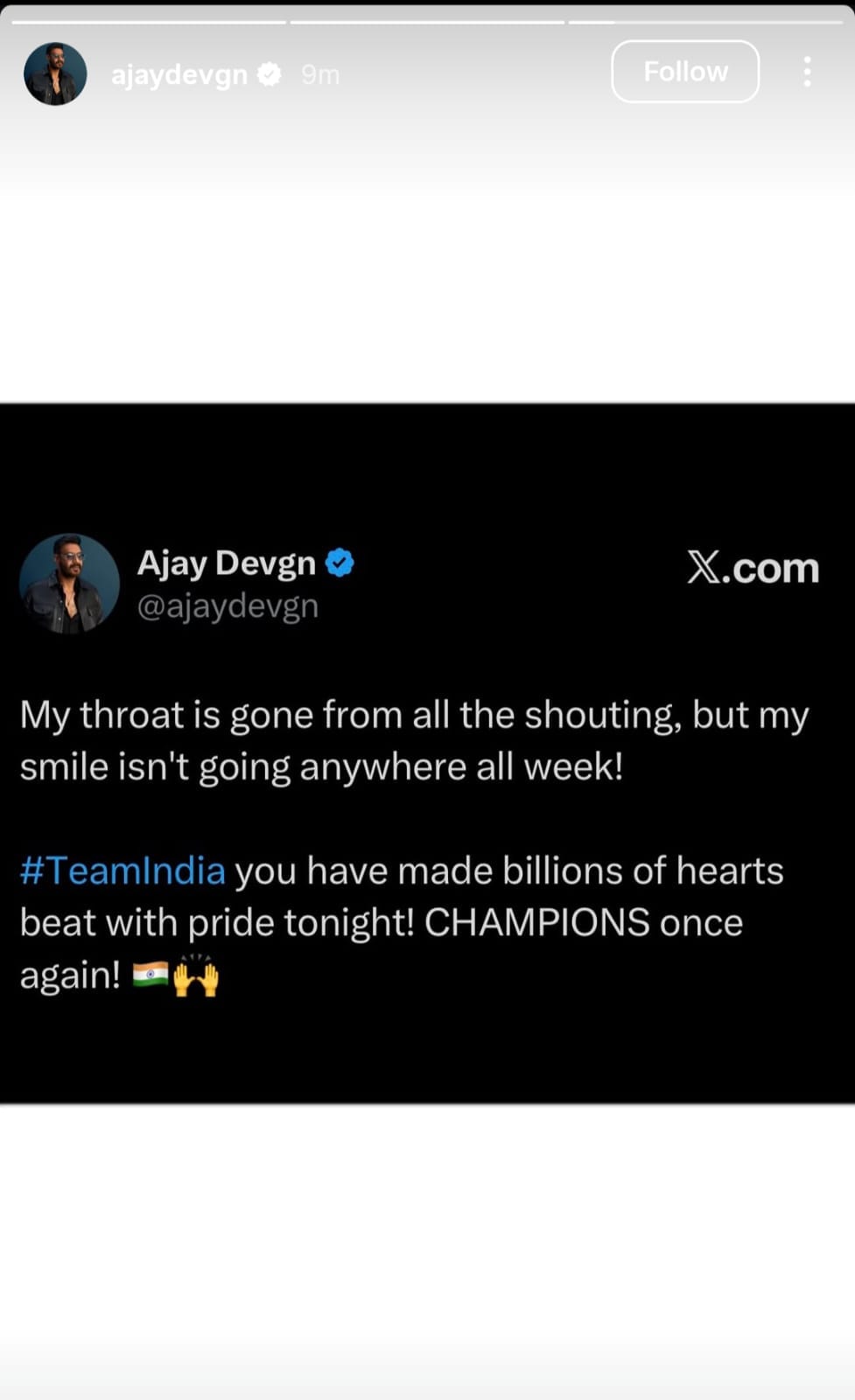 अजय देवगन ने टीम इंडिया को कहा चैंपियन