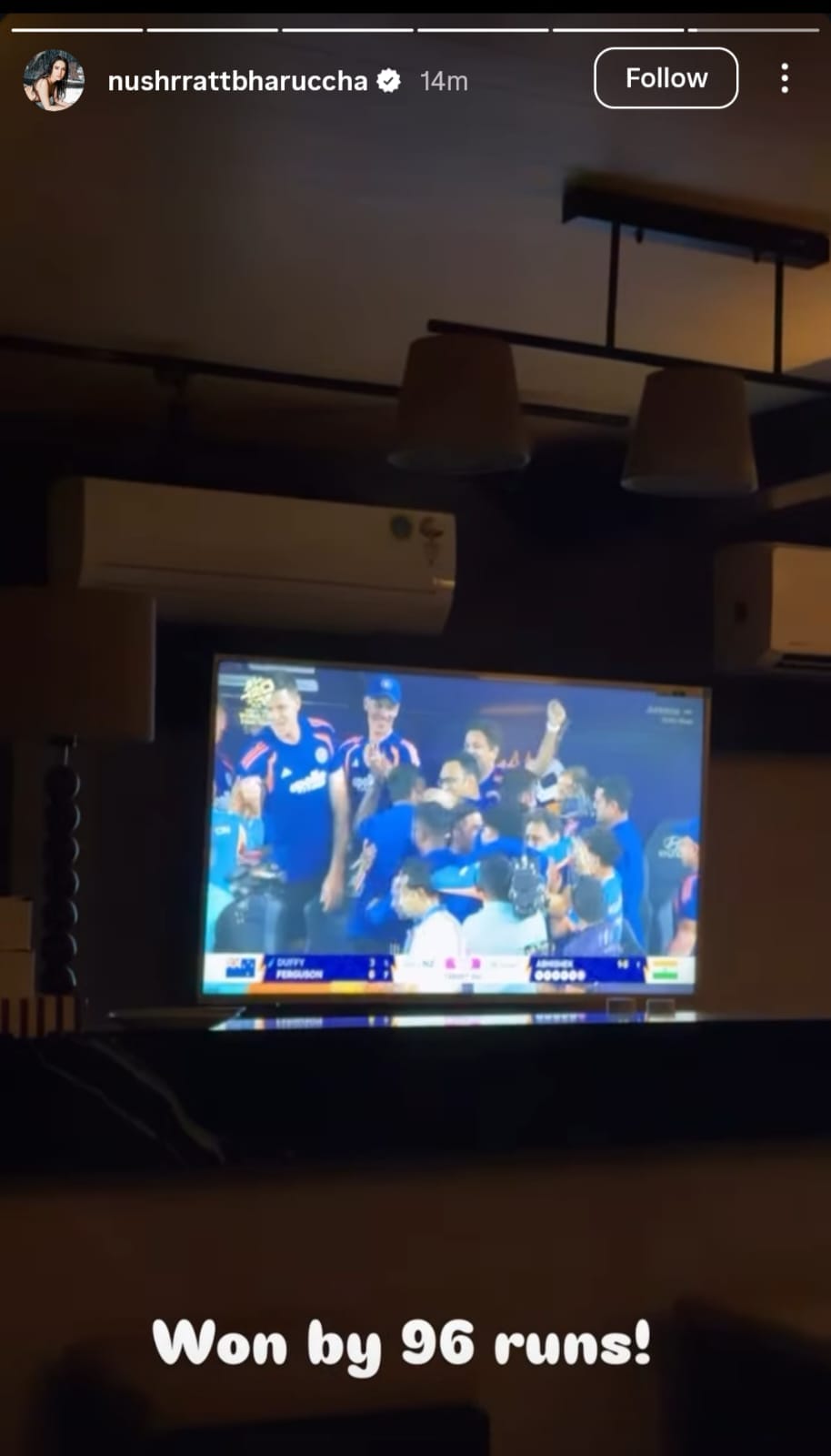 एक्ट्रेस नुसरत भरुचा ने टीवी टी20 वर्ल्ड कप देखा। जब टीम इंडिया ने मैच जीता तो वह खुशी ने नाचने लगी। उनकी हंसी बता रही थी, वह इस जीत की वजह से बहुत खुश हैं।