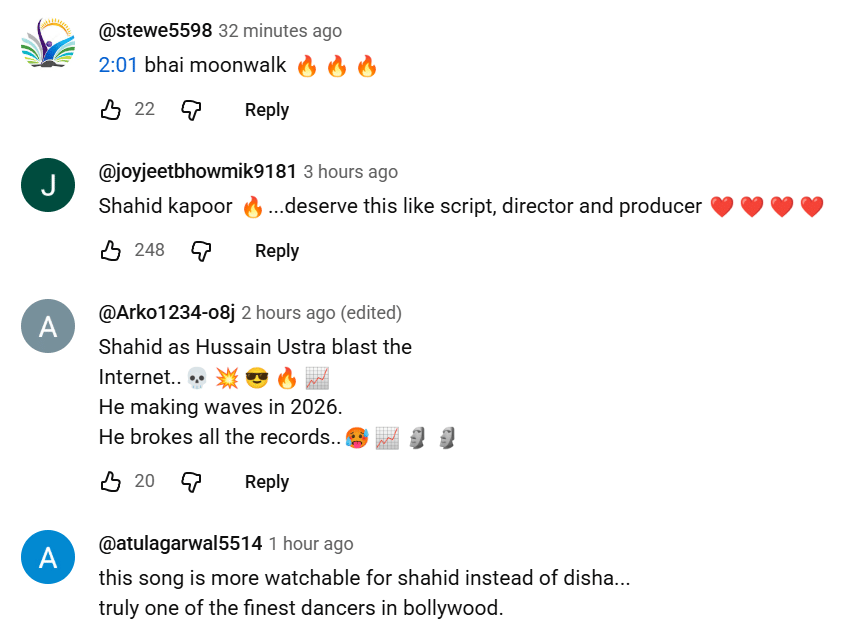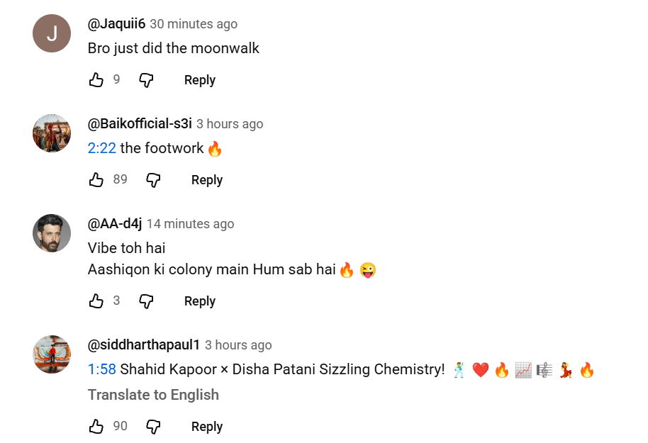 जावेद अली और मधुबंती बागची की आवाज में सजे इस गाने को देखने-सुनने के बाद नेटिजेंस की अलग-अलग प्रतिक्रियाएं सामने आ रही हैं। कुछ को जहां ये गीत काफी पसंद आ रहा है, तो वहीं कई यूजर्स को गाने ने निराश किया है। एक यूजर ने कमेंट में लिखा, ‘इस गाने को दिशा पाटनी से भी ज्यादा शाहिद कपूर के लिए देखना बनता है।’ वहीं कुछ और नेटिजेंस को भी गाने में शाहिद कपूर का मून वॉक और उनके डांस स्टेप्स काफी पसंद आए हैं।