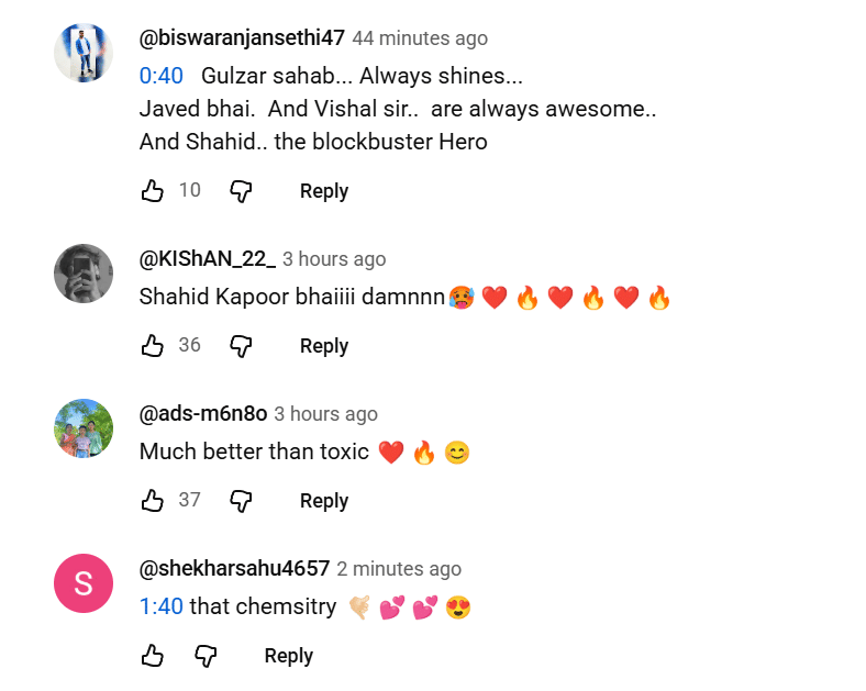 कई यूजर्स ने गुलजार के बोलों और विशाल भारद्वाज के संगीत की भी तारीफ की है। वहीं जावेद अली की आवाज में इस तरह का गाना सुनना भी लोगों को काफी भा रहा है। गाने को देखने के बाद दिशा पाटनी की हॉटनेस से भी ज्यादा चर्चा शाहिद कपूर के डांस मूव्स की हो रही है। एक यूजर का कहना है कि शाहिद कपूर को इस तरह की और फिल्में करनी चाहिए।
