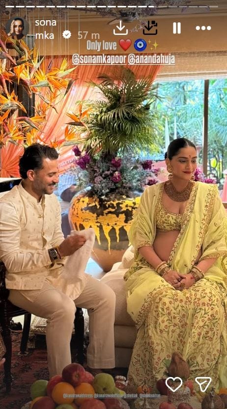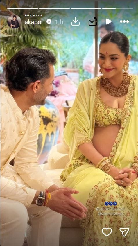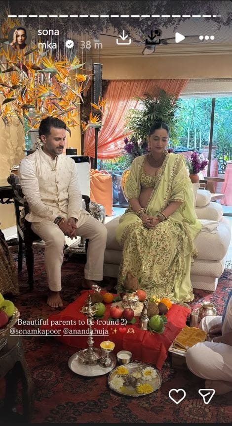 गोदभराई की रस्म की इनसाइड फोटोज शेयर करते हुए तमाम सेलेब्स ने सोनम कपूर और आनंद आहूजा को बधाई दी है। आनंद आहूजा और सोनम ने साल 2018 में शादी रचाई थी। अगस्त 2022 में कपल ने पहली संतान के रूप में बेटे का स्वागत किया। बेटे का नाम उन्होंने वायु रखा है। अब यह खूबसूरत जोड़ी अपनी दूसरी संतान का स्वागत करेगी।