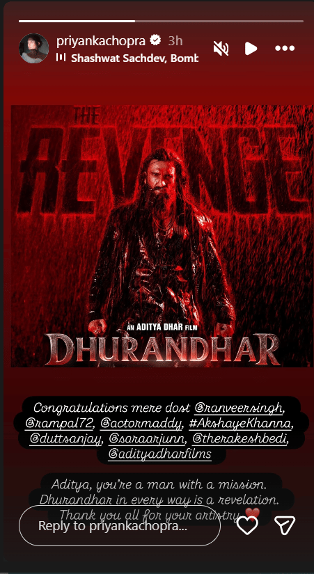 Priyanka Chopra heaps praise on Ranveer Singh and Aditya Dhar Dhurandhar The Revenge
