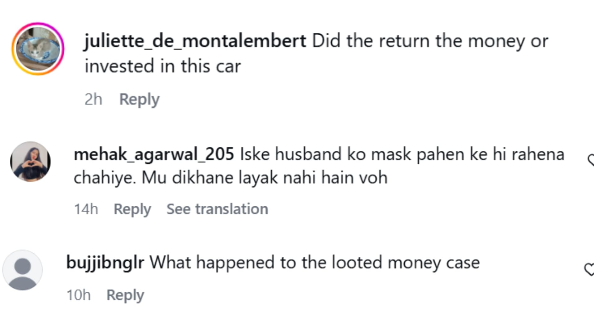 राज कुंद्रा के लग्जरी कार वाले वायरल वीडियो को देखकर सोशल मीडिया यूजर्स ने उन्हें ट्रोल किया। एक यूजर ने लिखा, ‘क्या पैसा लाैटाया है या इस कार में इंवेस्ट कर दिया है।’ इसी तरह एक अन्य यूजर्स ने लिखा, ‘शिल्पा के पति को अपना मुंह छिपाकर ही रखना चाहिए।’ बता दें कि पहले राज कुंद्रा एक अन्य केस के कारण चर्चा में आए थे तो पैपराजी के सामने मास्क पहनकर आते थे, अपना मुंह छिपाकर रखते थे। वहीं एक यूजर ने कमेंट किया, ‘लूट गए पैसों का क्या हुआ?’