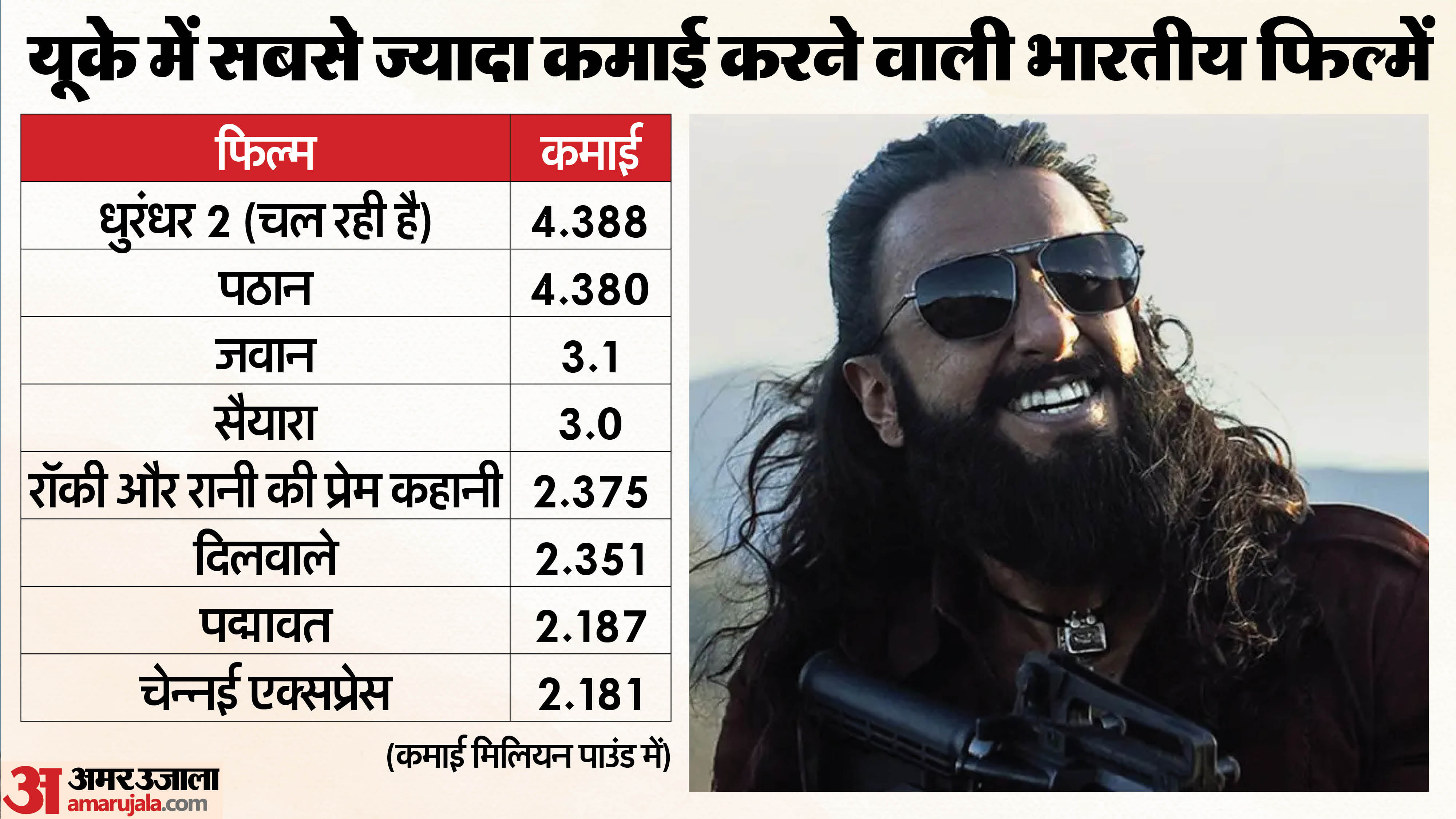 Dhurandhar 2 UK Collection: ‘धुरंधर 2’ बॉक्स ऑफिस पर लगातार नए कीर्तिमान स्थापित कर रही है। अब फिल्म ने एक और बड़ा रिकॉर्ड अपने नाम किया है और शाहरुख की ‘पठान’ को पीछे छोड़ दिया है। जानिए ‘धुरंधर 2’ ने अब बनाया क्या नया रिकॉर्ड…