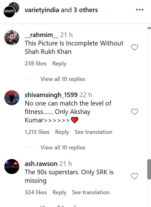 लॉन्च इवेंट में वैराइटी इंडिया मैगजीन का पहला कवर भी लॉन्च किया गया। इस कवर ने सभी का ध्यान खींचा। आखिर इंडस्ट्री के चार दिग्गज इस पर नजर आ रहे हैं। जी हां, सलमान खान, आमिर खान, अक्षय कुमार और अजय देवगन वैराइटी इंडिया मैगजीन के पहले कवर पर नजर आए हैं। यूं तो इस कवर पर नेटिजन्स की सकारात्मक प्रतिक्रिया आ रही है। मगर, कुछ लोग शाहरुख खान को मिस कर रहे हैं। यूजर लिख रहे हैं, 'शाहरुख खान के बिना यह कवर अधूरा है'।