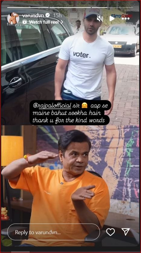 15 जनवरी को वरुण धवन ने अपनी इंस्टाग्राम स्टोरी पर राजपाल यादव के एक इंटरव्यू वीडियो क्लिप शेयर की है, जिसमें राजपाल यादव, वरुण के प्रति आभार व्यक्त करते नजर आ रहे हैं। वरुण ने लिखा, "राजपाल यादव सर आपसे मैंने बहुत सीखा है, इन दयालु शब्दों के लिए धन्यवाद।"