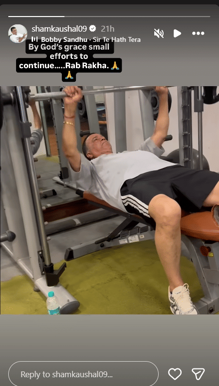 शाम कौशल ने अपनी इंस्टाग्राम स्टोरी पर वर्कआउट करते हुए एक वीडियो शेयर किया है। इस वीडियो में शाम जिम में जमकर कसरत करते नजर आ रहे हैं। इस वीडियो के साथ शाम ने कैप्शन में लिखा, 'ईश्वर की कृपा से छोटे-छोटे प्रयास जारी रखने की प्रेरणा मिलती है।'