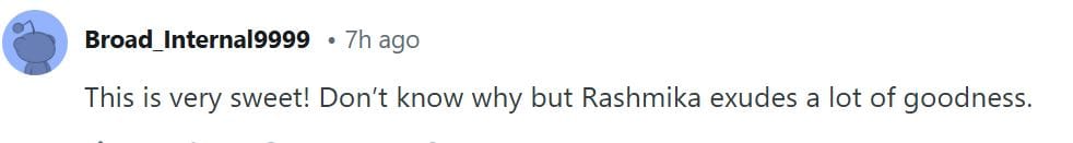 यह वीडियो सोशल मीडिया पर तेजी से वायरल हो रहा है। फैंस को वीडियो बहुत पसंद आ रहा है। एक यूजर ने लिखा 'यह बहुत अच्छा है। रश्मिका में बहुत सारी अच्छाईयां हैं।' एक दूसरे यूजर ने लिखा 'हे भगवान ये वाकई बहुत अच्छा है।' तीसरे यूजर ने लिखा 'फैंस के लिए यह बहुत अच्छी बात है।' एक और यूजर ने लिखा 'ये दोनों लोग मन और बाहर से बहुत खूबसूरत हैं।'