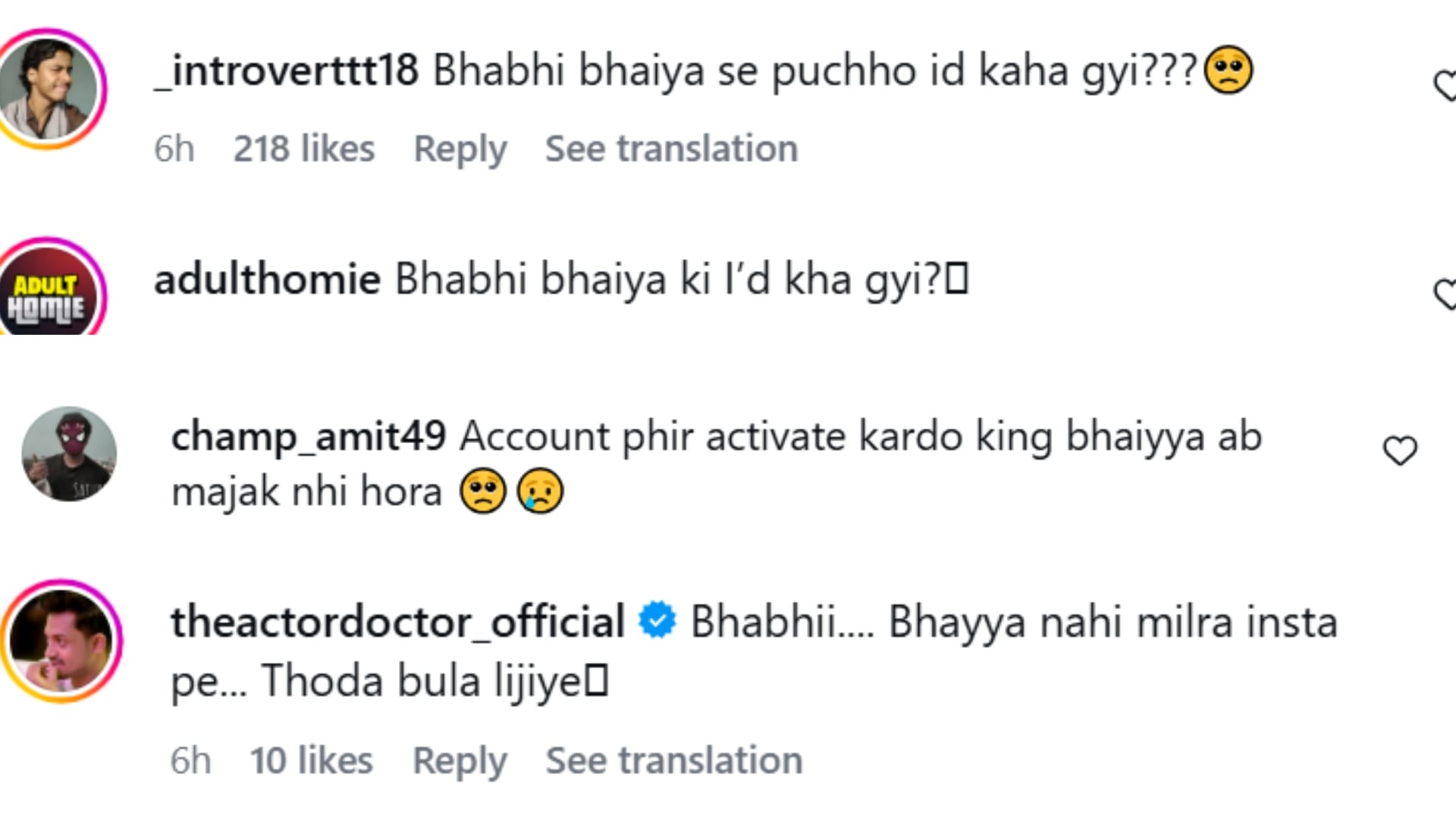 - एक और फैन दुखी होकर कमेंट लिखता है, ‘भाभी, भैया नहीं मिल रहे इंस्टाग्राम पर, जरा बुला दीजिए।।’