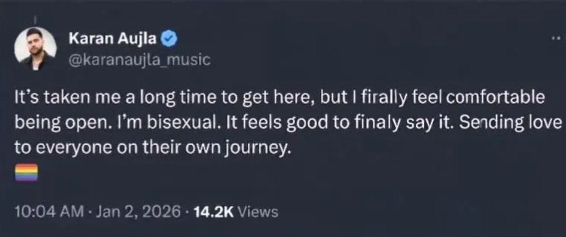 करण औजला के नाम पर एक स्क्रीनशॉट सोशल मीडिया पर तैर रहा है। इसमें यह दावा किया गया है कि वे बायसेक्सुअल हैं। वायरल स्क्रीनशॉट एक्स अकाउंट से पोस्ट किया हुआ नजर आ रहा है। प्रोफाइल पिक्चर पर करण औजला की फोटो लगी है और उन्हीं का नाम लिखा है। पहली बार में पढ़कर यही लगेगा कि यह करण औजला ने किया है। मगर, सच्चाई यह है कि यह एक फर्जी पोस्ट है।