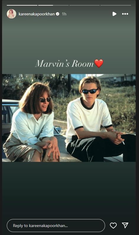 करीना की दूसरी पसंदीदा फिल्म है 'मार्विन्स रूम'। इस फिल्म में डाएन ने मेरिल स्ट्रीप की बहन बेसी का किरदार निभाया। यह फिल्म दो बहनों की कहानी है, जो अलग-अलग जिंदगी जी रही हैं, लेकिन एक गंभीर बीमारी के कारण फिर से मिलती हैं। इस फिल्म में लियोनार्डो डिकैप्रियो ने भी मुख्य भूमिका निभाई है।