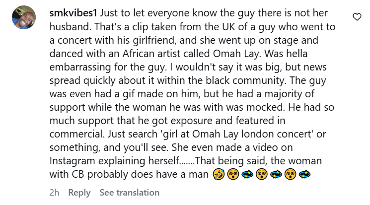 वीडियो तेजी से वायरल हो रहा है और लोग एक शादीशुदा महिला के अचानक क्रिस ब्राउन को किस करने पर उसे ट्रोल कर रहे हैं। हालांकि, इस बात का कोई पुख्ता सबूत नहीं मिलता है कि स्टेज पर मौजूद महिला शादीशुदा है या नहीं। न ही ये पता चलता है कि वो व्यक्ति उस महिला का पति ही है। कई मीडिया रिपोर्ट्स में ये भी दावा किया जा रहा है कि निराश व्यक्ति वाला वीडियो अलग है और उसे एडिट करके इस वीडियो के साथ जोड़ा गया है। हालांकि, अभी तक क्रिस ब्राउन ने खुद इस घटना पर कोई टिप्पणी नहीं की है।
