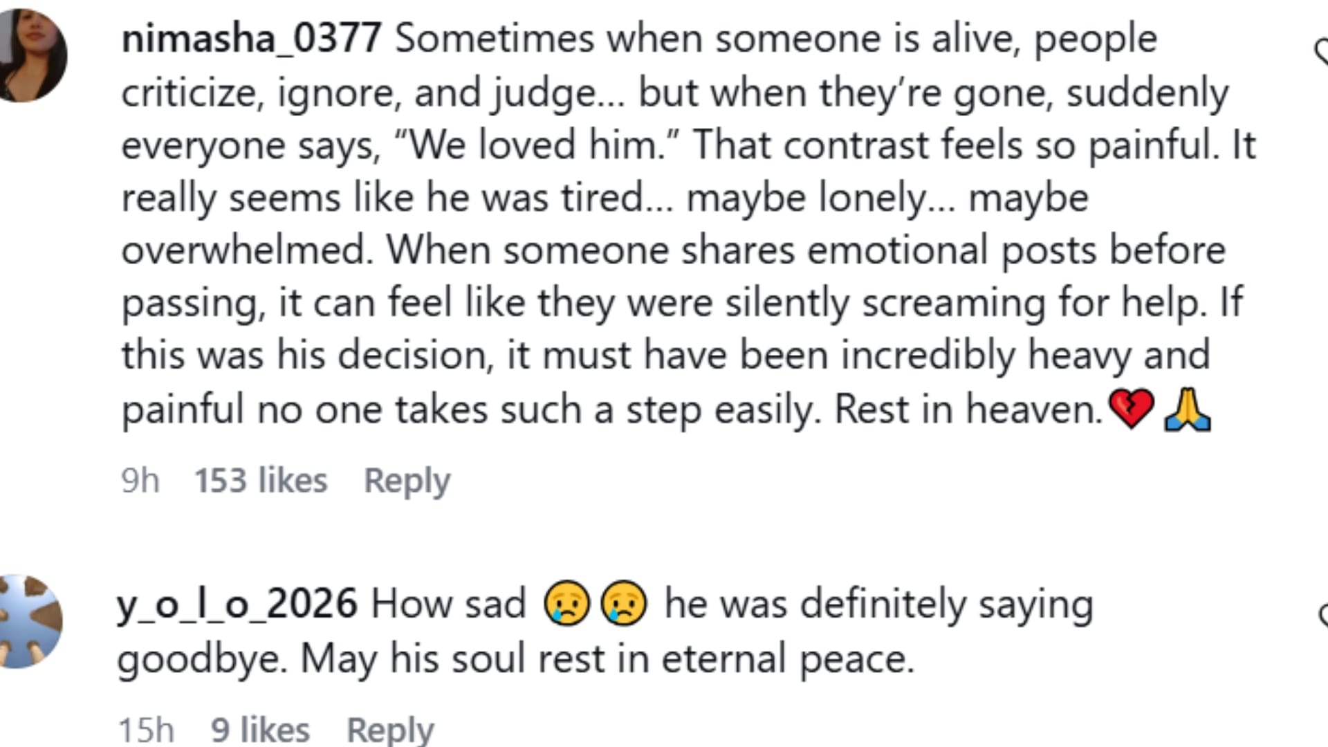 कोरियन एक्टर जंग यून वू की आखिरी क्रिप्टिक पोस्ट और मौत पर फैंस ने रिएक्शन दिए हैं। एक यूजर ने लिखा, ‘मैं एक बेहतर दुनिया में आपके अधिक चमकने की प्रार्थना करता हूं।’ एक अन्य यूजर ने लिखा, ‘कितना दुखद है, वो अलविदा कह रहे थे। भगवान उसकी आत्मा को शांति दे।’ इसी तरह एक फैन ने एक लंबा कमेंट किया और लिखा, ‘कभी-कभी जब कोई जिंदा होता है, तो लोग बुराई करते हैं। नजरअंदाज करते हैं और जज करते हैं। लेकिन जब वे चले जाते हैं, तो अचानक सब कहते हैं कि हम उससे प्यार करते थे। यह अंतर बहुत दर्दनाक बात लगती है। सच में ऐसा लगता है कि वे थके हुए, अकेले और परेशान थे। जब कोई गुजरने से पहले इमोशनल पोस्ट शेयर करता है, तो ऐसा लग सकता है कि वे चुपचाप मदद के लिए चिल्ला रहा था। अगर यह उसका फैसला था, तो यह बहुत भारी और दर्दनाक रहा होगा, कोई भी ऐसा कदम आसानी से नहीं उठाता। भगवान उसकी आत्मा को शांति दे।’