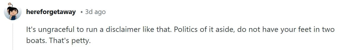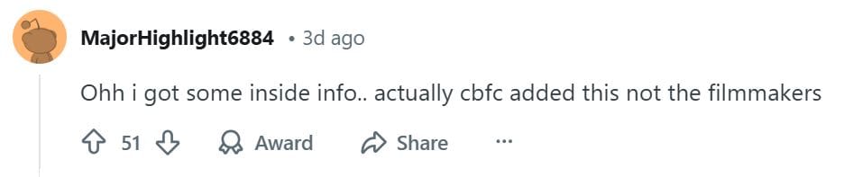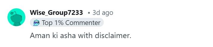 फिल्म 'इक्कीस' का ये डिस्क्लेमर सोशल मीडिया पर वायरल हो रहा है। इस पर एक यूजर ने कमेंट करते हुए लिखा है 'इस तरह का डिस्क्लेमर चलाना बहुत अच्छा है। राजनीति को एक तरफ रखें। अपने पैर दो नावों पर न रखें।' एक दूसरे यूजर ने लिखा है 'यह डिस्क्लेमर फिल्ममेकर्स ने नहीं जोड़ा है। इसे केंद्रीय फिल्म प्रमाणन बोर्ड ने जोड़ा है।' एक यूजर ने लिखा है 'मुझे यकीन है कि यह आखिरी वक्त में जोड़ा गया है।' एक दूसरे यूजर ने कहा है 'इक्कीस के साथ अमन की आशा।'