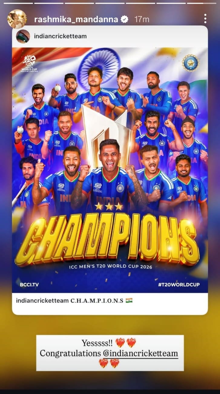 रश्मिका मंदाना ने भारतीय टीम की तस्वीर शेयर करते हुए कैप्शन में लिखा है 'भारतीय टीम को शुभकामनाएं।'