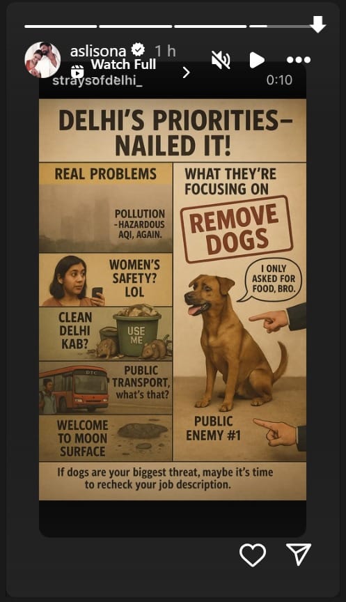 बॉलीवुड अभिनेत्री जान्हवी कपूर और अभिनेता वरुण धवन ने इस आदेश को निर्दयी और अनुचित बताते हुए अपनी नाराजगी सोशल मीडिया पर जाहिर की है। जाह्नवी ने अपनी इंस्टाग्राम स्टोरी में एक पिटीशन शेयर करते हुए लिखा कि सड़कों पर रहने वाले ये जानवर सिर्फ आवारा कुत्ते नहीं हैं, बल्कि ये हमारे समाज का हिस्सा हैं।