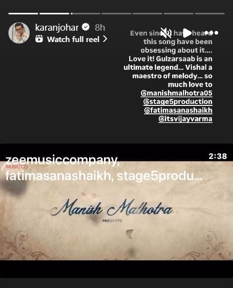 काजोल ने अपनी इंस्टाग्राम स्टोरी पर गाने की वीडियो क्लिप शेयर करते हुए लिखा है 'इसका बेसब्री से इंतजार है मनीष मल्होत्रा।' करण जौहर ने भी इस फिल्म को लेकर अपने उत्साह को सोशल मीडिया पर साझा किया है। उन्होंने अपनी इंस्टाग्राम स्टोरी पर लिखा 'जब से मैंने यह गाना सुना है, तब से मैं इसके बारे में सोच रहा हूं। मुझे यह बहुत पसंद है! गुलजार साहब एक लीजेंड हैं। विशाल सुरों के उस्ताद हैं। मनीष मल्होत्रा, फातिमा सना शेख, विजय वर्मा और स्टेज5 प्रोडक्शन को बहुत सारा प्यार।'