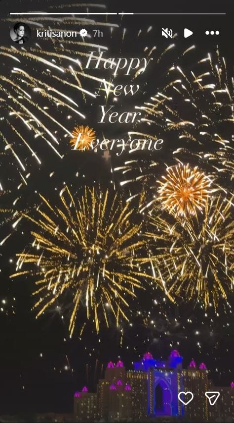 कृति सेनन ने नए साल के मौके पर फैंस को बधाई दी है। उन्होंने इंस्टाग्राम पर एक वीडियो शेयर किया है जिसमें बहुत सारे पटाखे फूट रहे हैं।