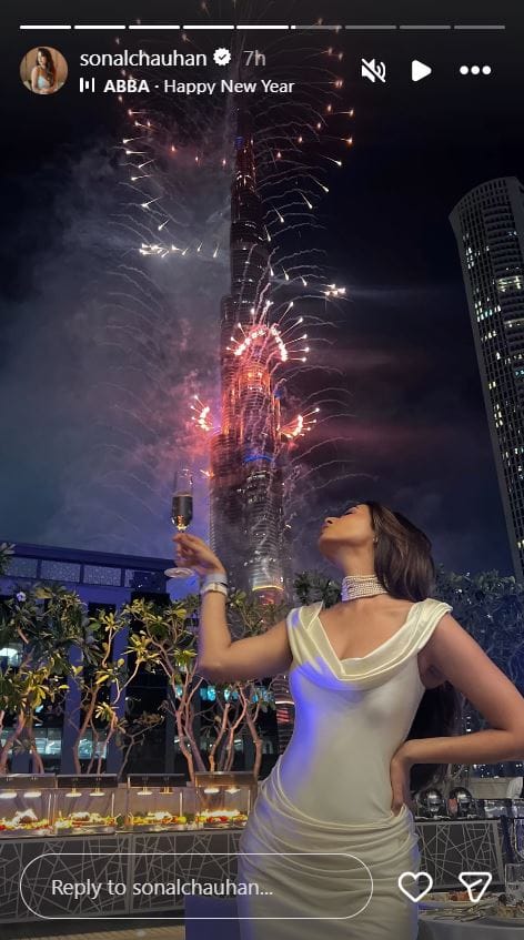 सोनल चौहान ने दुबई में बुर्ज खलीफा के पास जश्न मनाते हुए नए साल का स्वागत किया है।