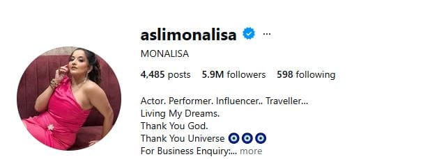 अंतरा बिस्वास, जिन्हें स्टेज पर मोना लिसा के नाम से जाना जाता है। ये अब तक 125 भोजपुरी फिल्में कर चुकी हैं, और इसके साथ ही हिन्दी, बंगाली, ओडिया, तमिल, कन्नड़ और तेलुगू फिल्मों में भी काम कर चुकी हैं। मोना लिसा के इंस्टाग्राम पर 5.9 मिलियन फॉलोअर्स हैं।