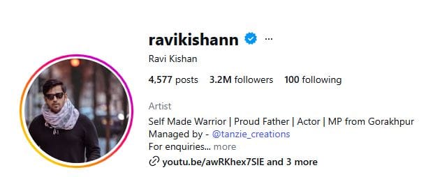 रवि किशन एक्टर और टेलीविजन पर्सनालिटी हैं। उन्होंने अपनी दमदार एक्टिंग से बॉलीवुड और भोजपुरी सिनेमा में काफी नाम कमाया है। हाल ही में वे ‘लापता लेडीज’ और ‘मामला लीगल है सीजन 2’ में नजर आए थे। दोनों प्रोजेक्ट्स के लिए रवि किशन को फैंस से काफी प्यार मिला है। रवि किशन के इंस्टाग्राम पर 3.2 मिलियन फॉलोअर्स हैं।