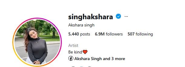 अक्षरा सिंह भोजपुरी इंडस्ट्री की जानी-मानी एक्ट्रेस हैं और अपने काम के लिए कई अवॉर्ड्स भी जीत चुकी हैं। अक्षरा को एक्शन ड्रामा ‘तबादला’, राजनीतिक ड्रामा ‘सरकार राज’ और एक्शन रोमांस ‘सत्या’ जैसी फिल्मों में उनकी एक्टिंग के लिए जाना जाता है। उनके इंस्टाग्राम पर 6.9 मिलियन फॉलोअर्स हैं।