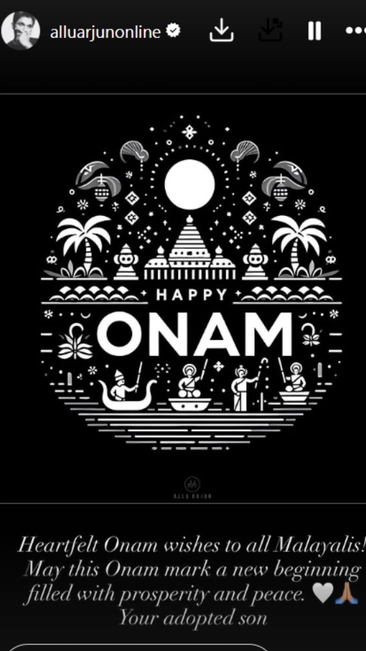 ‘पुष्पा’ फिल्म फेम एक्टर अल्लू अर्जुन ने भी इंस्टाग्राम स्टोरी पर ओणम फेस्टिवल को लेकर पोस्ट साझा की है। वहीं मालविका मोहनन ने अपने फैंस और उनके परिवार को ओणम की बेस्ट विशेज दी हैं।