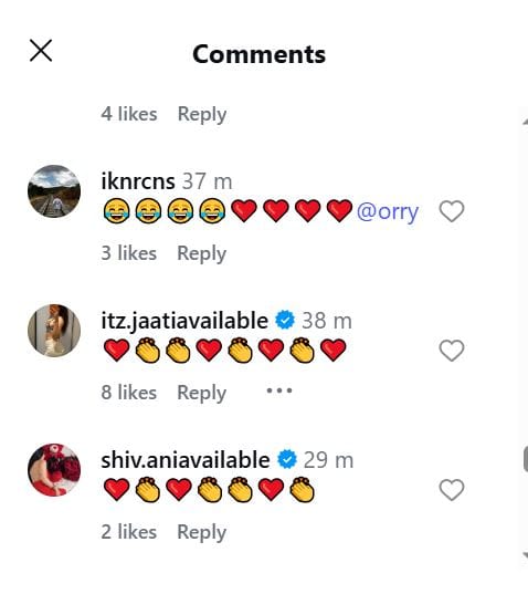 ओरी और उर्वशी के वीडियो पर नेटिजंस के रिएक्शंस आए हैं। यूजर्स रेड हार्ट इमोजी और फायर इमोजी पोस्ट कर रहे हैं। एक यूजर ने ओरी के लिए लिखा है, 'ये छोरा जबर्दस्ती नाचै'। उर्वशी के वर्क फ्रंट की बात करें तो वे 'वेलकम टू द जंगल' में नजर आएंगी। यह मल्टीस्टारर फिल्म इसी साल बड़े पर्दे पर रिलीज होगी। फिल्म में अक्षय कुमार लीड रोल में हैं। उनके अलावा रवीना टंडन, अरशद वारसी, सुनील शेट्टी, जॉनी लीवर सहित 30 सितारे फिल्म का हिस्सा हैं।