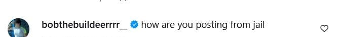 ओरी की इस पोस्ट को कई यूजर्स लाइक कर रहे हैं और उस पर कमेंट कर रहे हैं। एक यूजर ने लिखा है 'आप जेल से कैसे पोस्ट कर रहे हो?' एक दूसरे यूजर ने लिखा 'पूछताछ के ब्रेक के दौरान ओरी ने इसे पोस्ट किया है।' एक और यूजर ने लिखा है 'भाई क्या क्या पूछा गया?' एक और यूजर ने पूछा 'आप जेल से बाहर कब आए?'